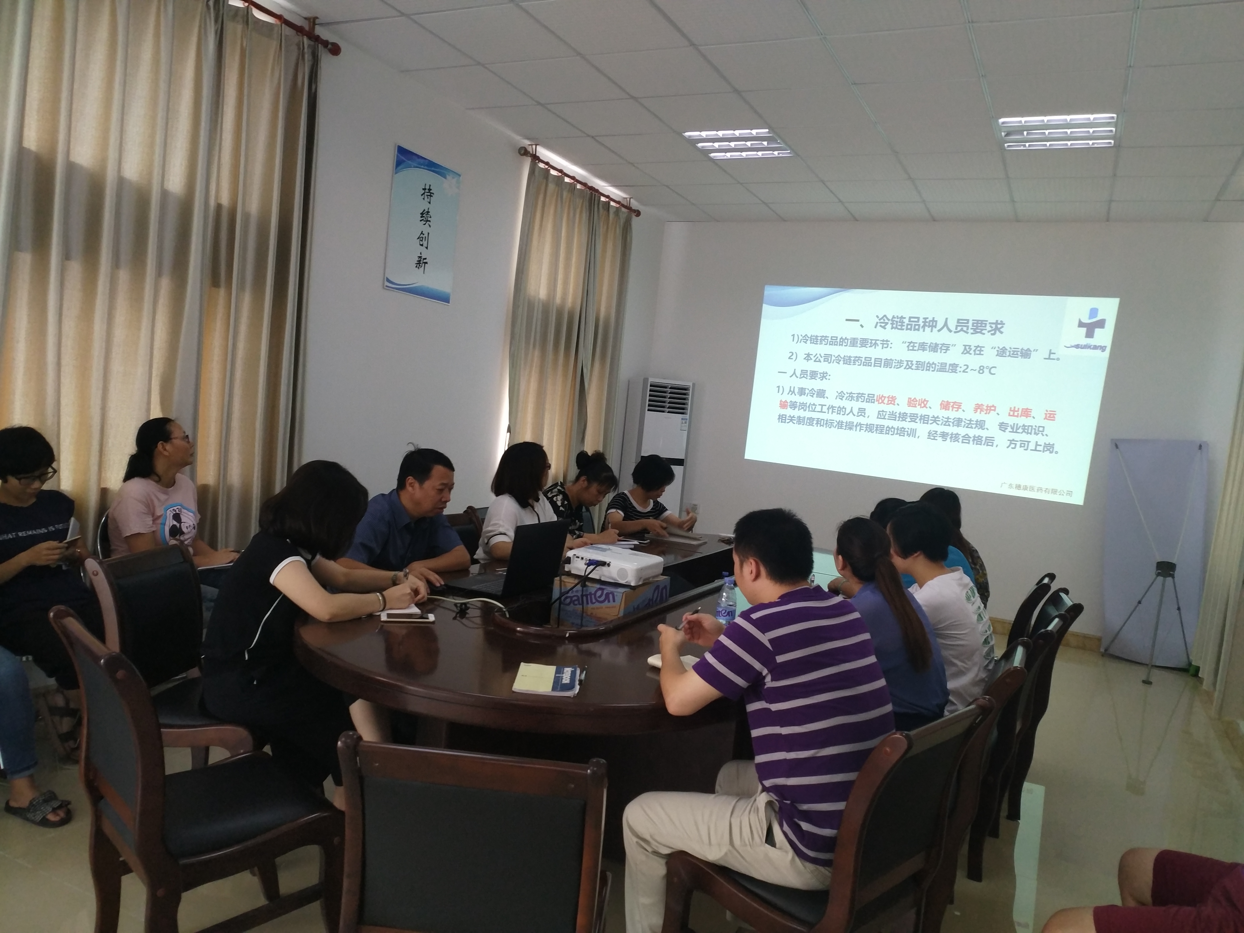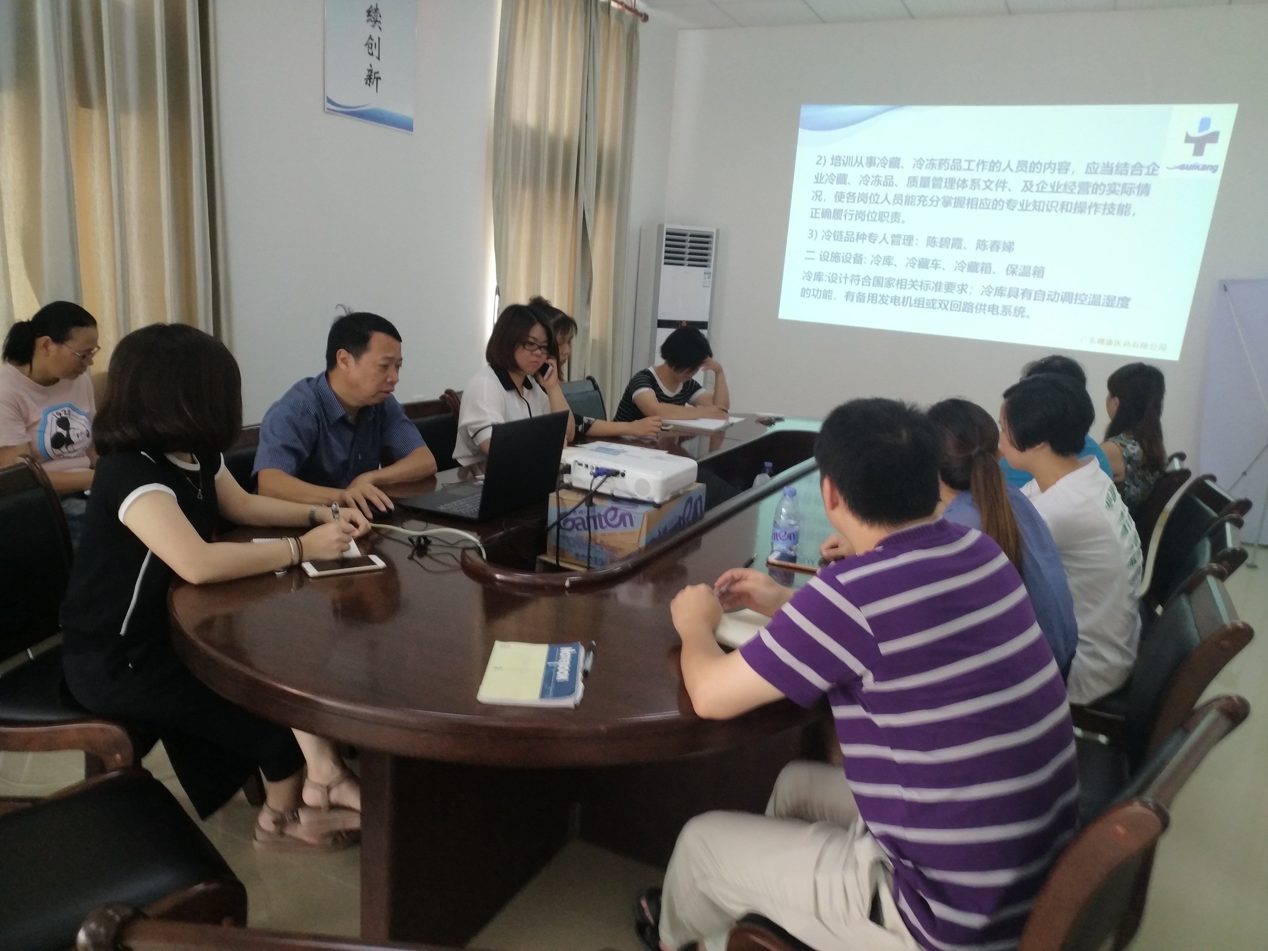 2018年6月30日公司組織GSP培訓(xùn)會(huì)議。第一節(jié)冷鏈知識(shí)培訓(xùn):冷鏈人員要求、冷鏈設(shè)施設(shè)備、溫濕度自動(dòng)監(jiān)測(cè)系統(tǒng)、冷鏈品種的追溯、冷鏈品種運(yùn)輸要求、冷鏈品種委托運(yùn)輸、定義等內(nèi)容。